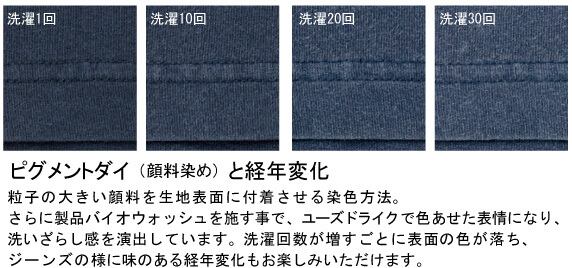 顔料染めとさらにバイオウォッシュ加工を施したヴィンテージ感を味わえるTシャツになります。
