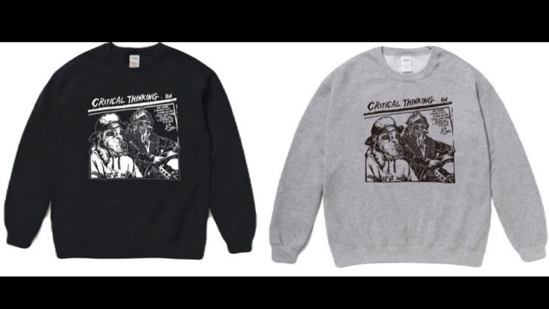 LONG WAY HOME ツアーの帰り道で凄い嵐にあった。ムカついてTMGEを爆音でかけた。すぐ仲間になれたよ。 彼の感性を通せば我々はイヌとニワトリだ。 IZNはなんだろう。。。 今回はオールシーズン着れるように裏起毛ではなく頑丈なパイル素材にしました どうぞご自由に。 Artwork by TKMT frustration. size:S、M、L、XL、XXL color:BLACK、GRAY body : United Athle 5044-01 スウェット 5214-01 パーカー 【受注期間】 12/28ー1/3 発送1月中旬になります